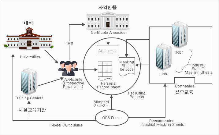 모델커리큘럼은 공개SW 인력을 교육하기 위한 자료일 뿐 아니라, 9개의 스킬에 대하여 Creative-Commons 라이선스를